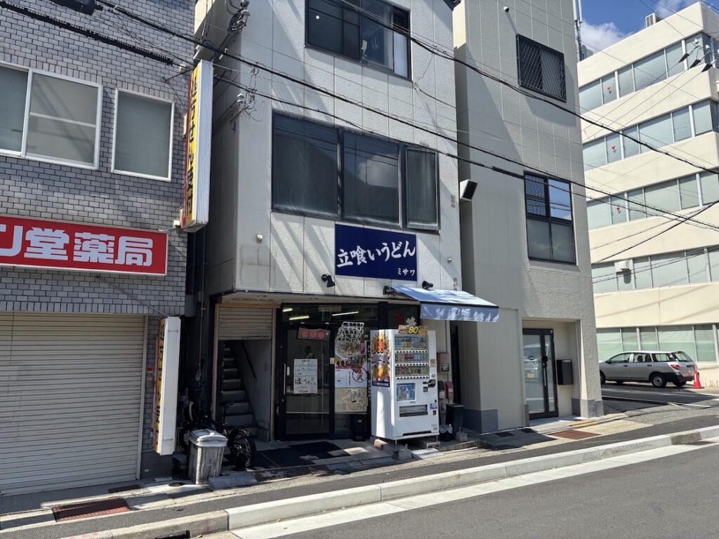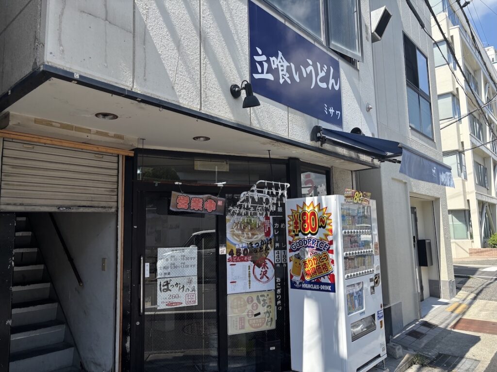 軽く休憩して再出発。三宮から南下して和田岬の裏道を抜けると、目指す「立喰いうどん ミサワ」に到着。