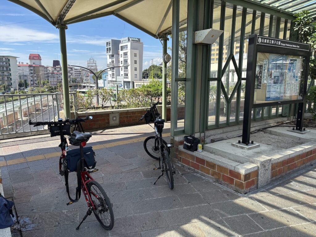 まずは摩耶埠頭で待ち合わせ。海風が少しだけ涼しく感じられる午後、ミニベロにまたがって、ゆるりとスタートです。