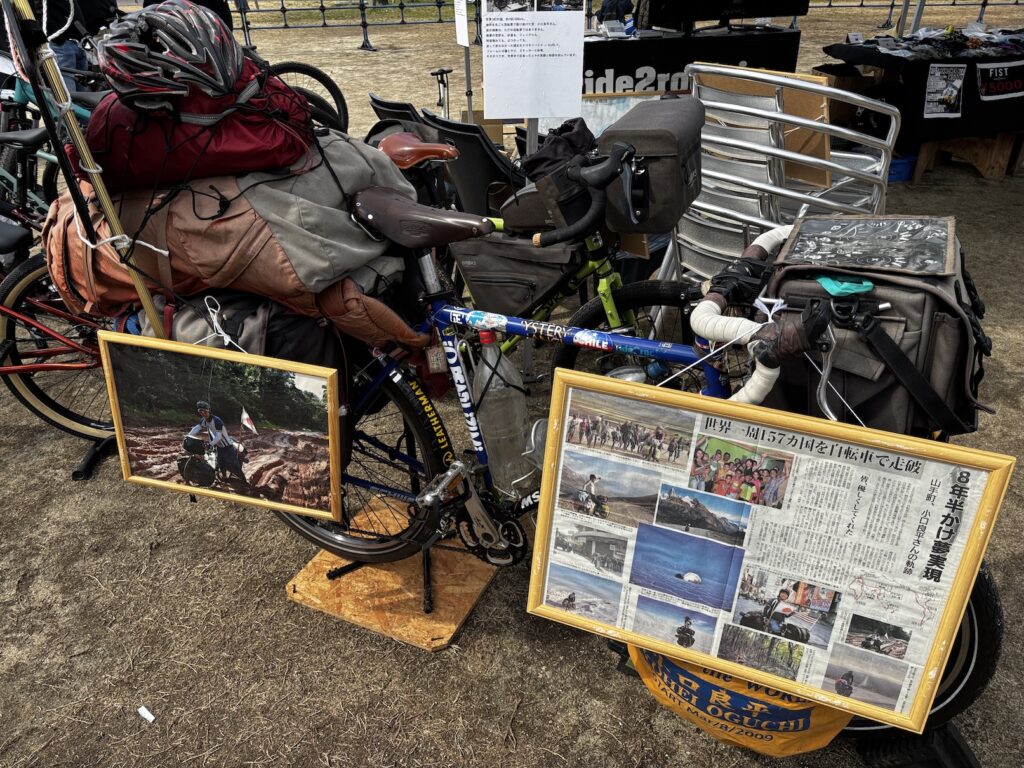 会場には高級ロードバイクや、世界一周を達成した実車など、見応えのある展示が多数。