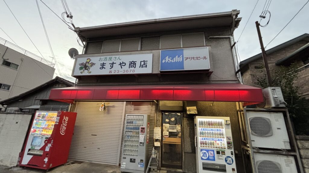角打ち「ますや商店」は、兵庫県西宮市の下町にひっそりと佇む老舗の酒屋。