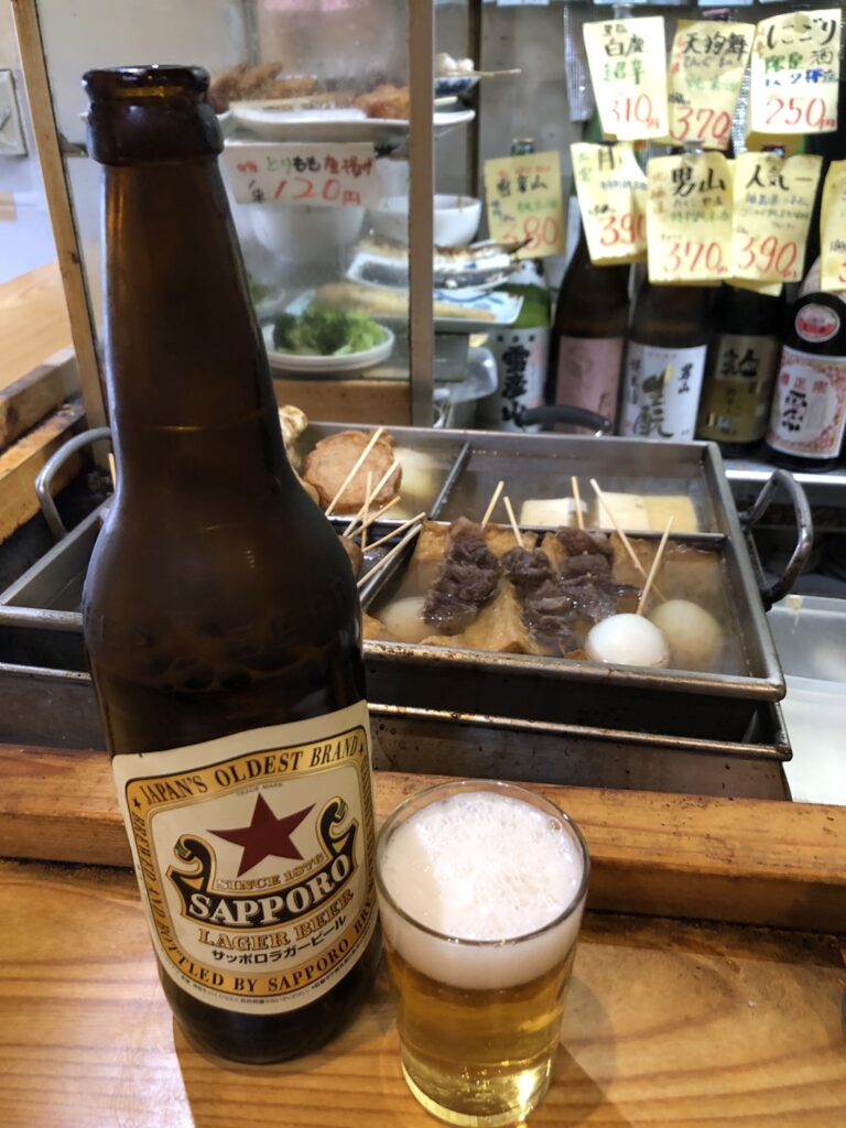 サッポロの瓶ビール、通称“赤星”。ラベルの星は、飲み手の心にも火を灯す。