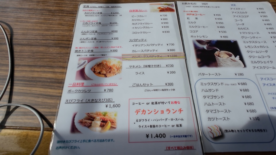 名物「エビフライ定食(1250円)」を即決し、開店前に先に注文しといた。デカンショランチは次回にお預けや。