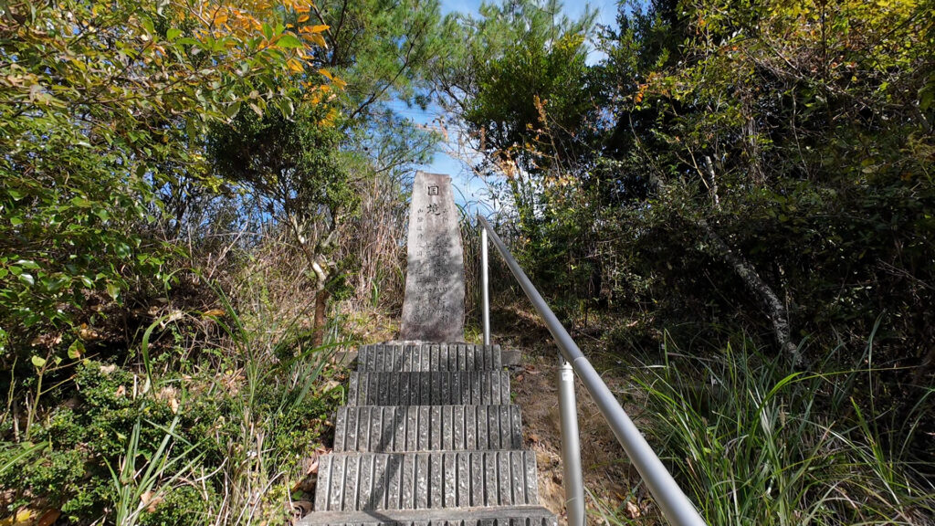 田畑に囲まれた細道で、かつての藩境の石柱に出会う。
