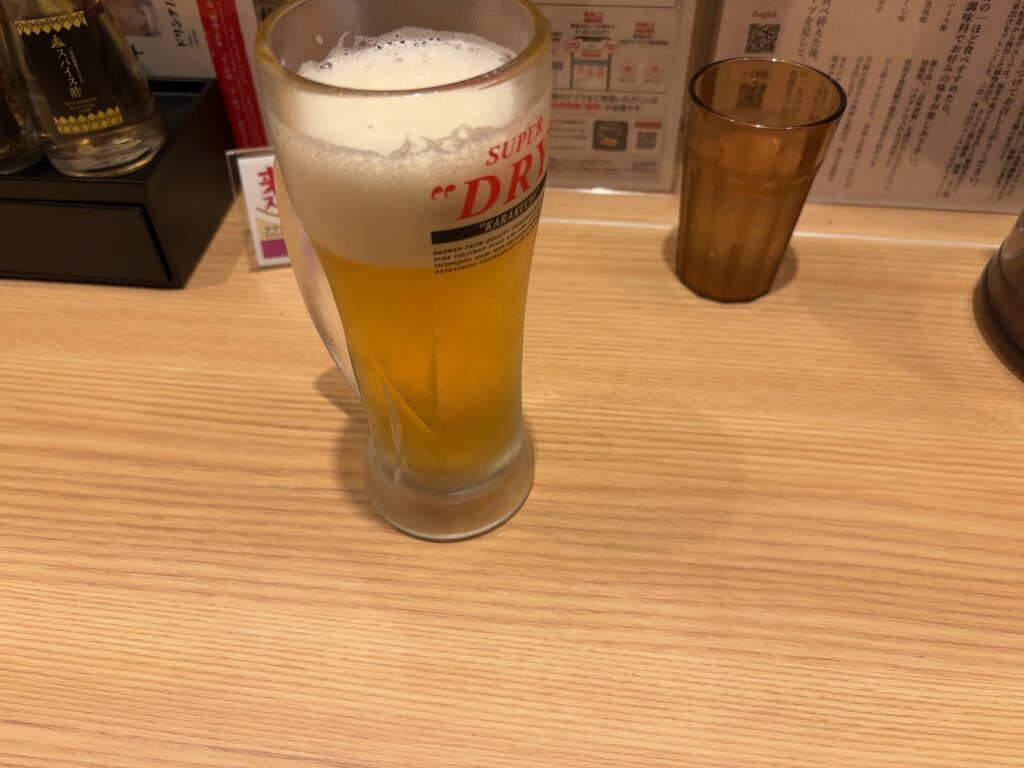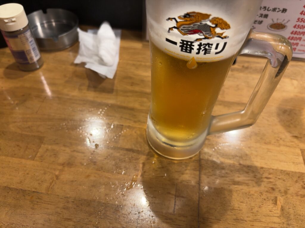 サッと滑り込んで、開幕の一杯。もちろん、生ビールや。