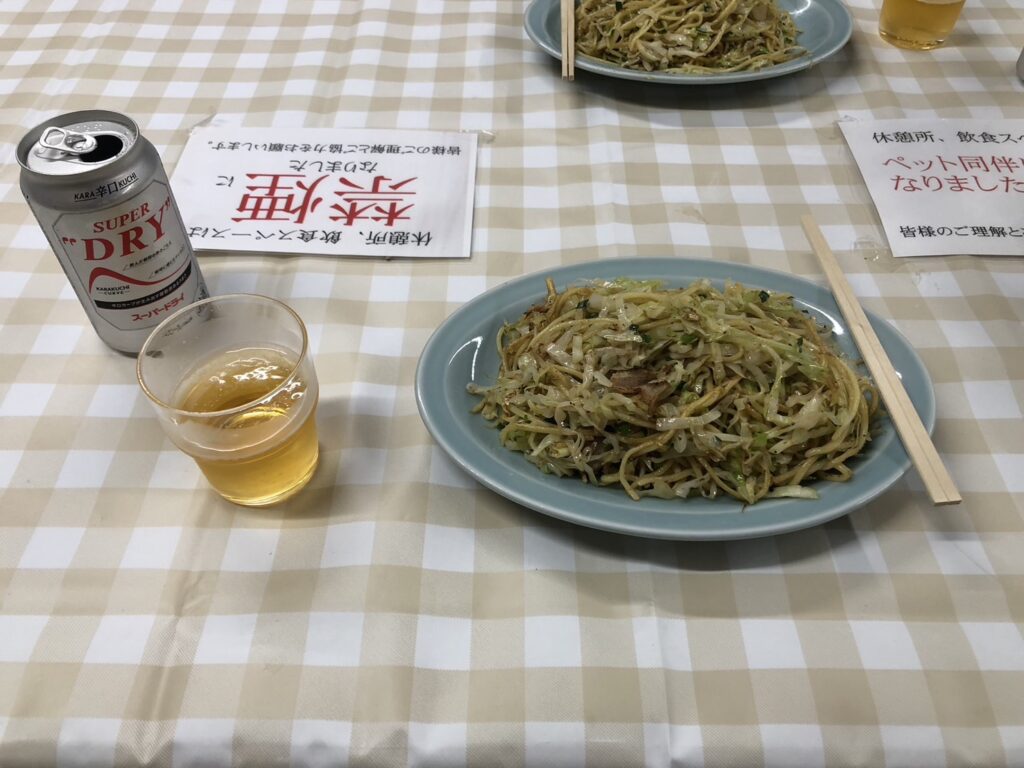 そば焼きはキャベツ多めの細切りで、味はちょいと控えめ。