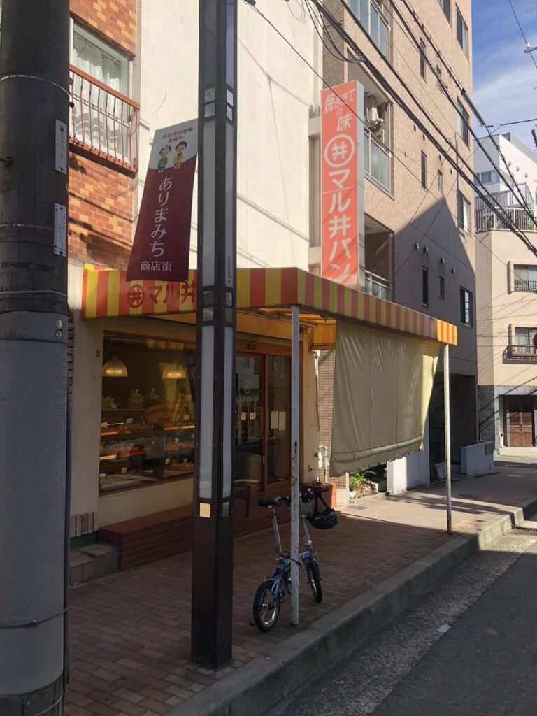 JR住吉駅近く、坂の途中の商店が立ち並ぶ一角にたたずむ「マル井パン」
