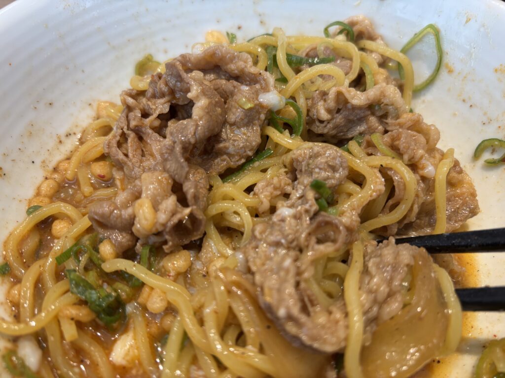 まずは牛肉と麺を一口。