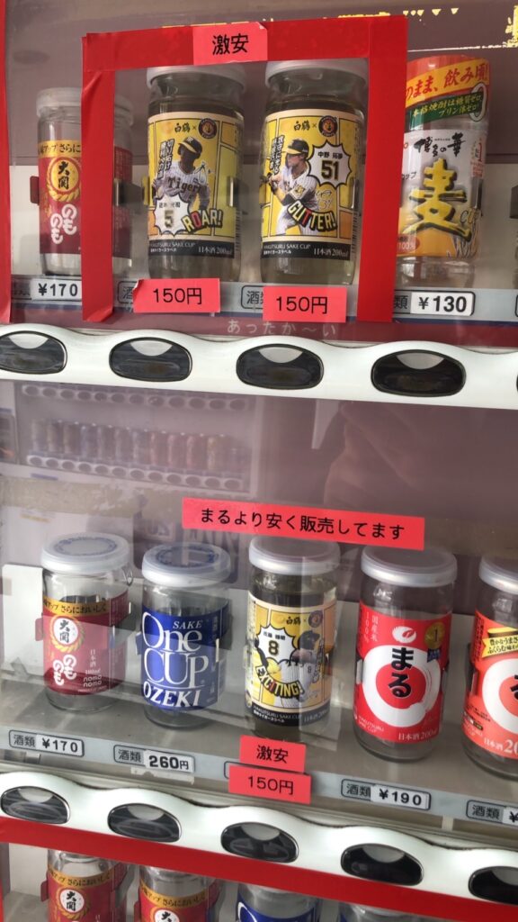 途中、阪神タイガースのカップ酒が150円で売られている自販機を発見。