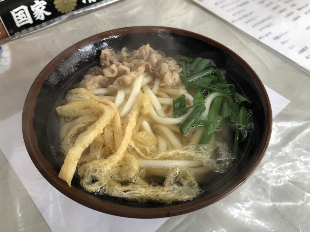 肉うどんを注文し、ひと息つく。やさしい出汁の味わいが、ほどよく疲れた身体に沁みていく。派手さはないが、安心して食べられる一杯。こういう店こそ、長く通いたくなる存在だと感じさせてくれるお店だった。