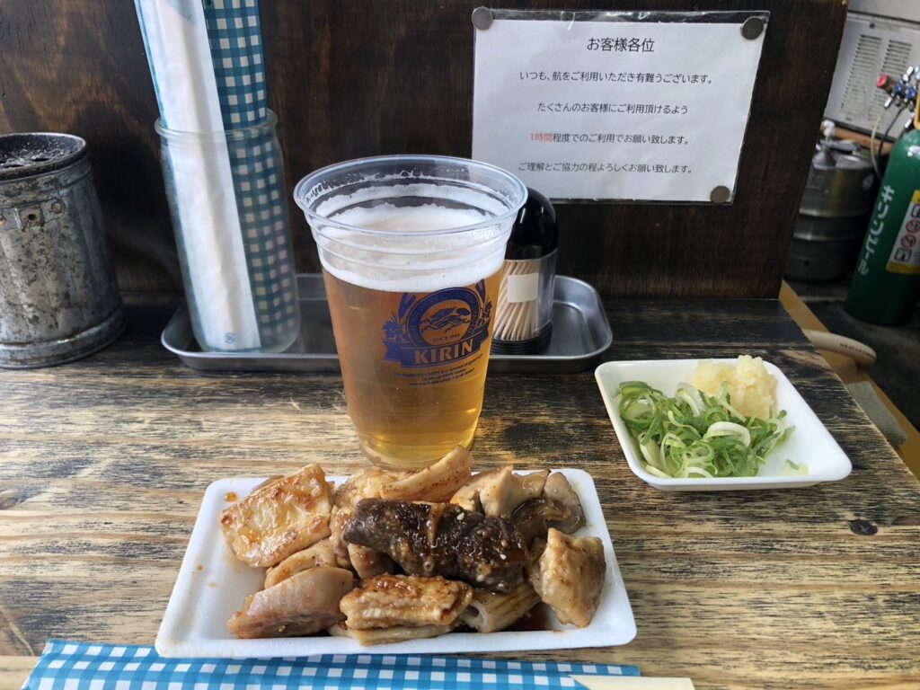 ここではホルモンと生ビールを注文。牛ホルモンの旨みがしっかりと感じられ、満足度は高い。軽くのつもりが、気づけばしっかり食べてしまう内容だった。一日の締めとしては申し分ない一軒だ。
