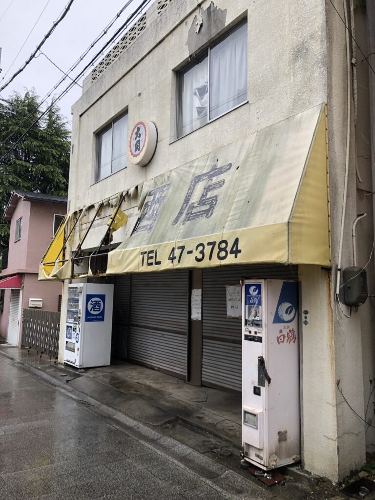 そして鹿間酒店に到着すると——シャッターが、閉まっている。