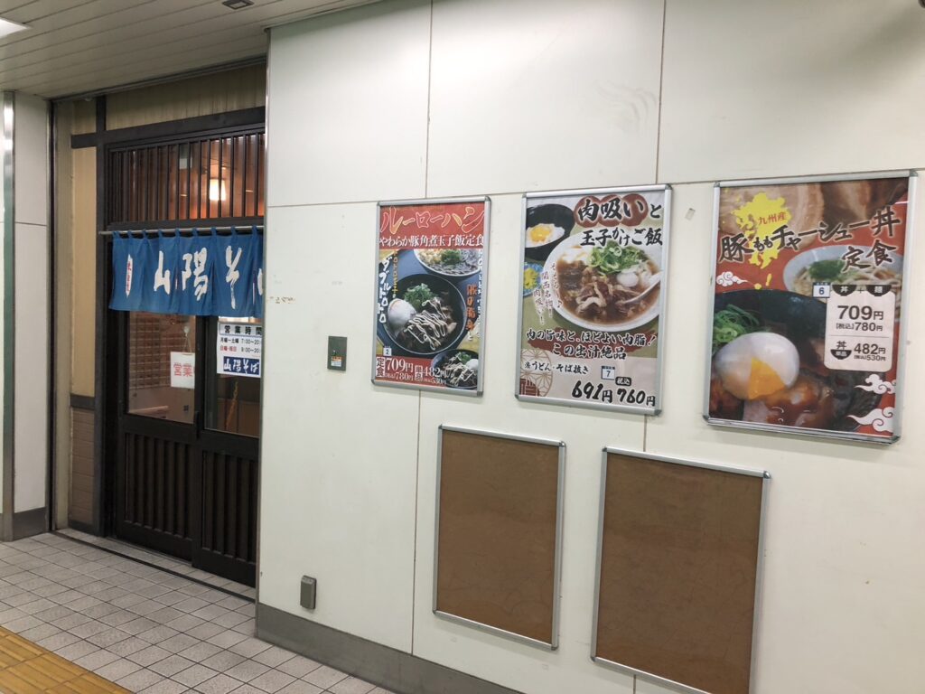 明石での海の幸グルメを堪能し、いよいよ一日の締めくくり。最後に立ち寄ったのは、駅構内にある**「山陽そば」**だ。