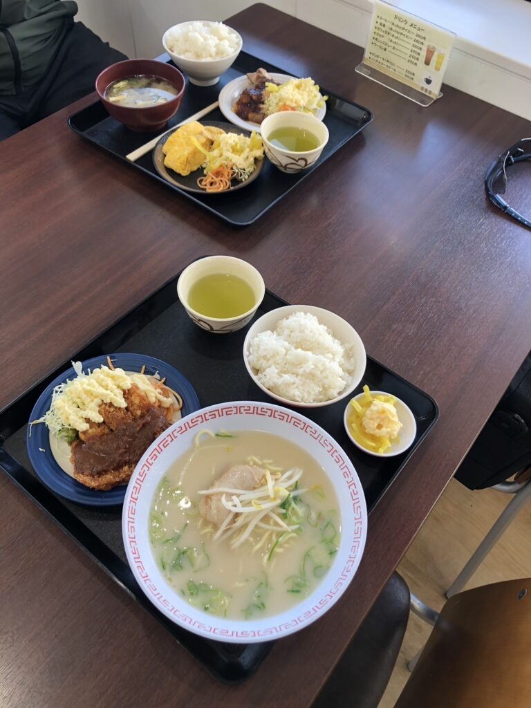 「ちゃんと食べんと、午後の走りがもたへんからな」という梅ちゃんの言葉どおり、しっかりエネルギー補給。港の食堂で食べるランチには、なんともいえない飾らない美味しさがある。