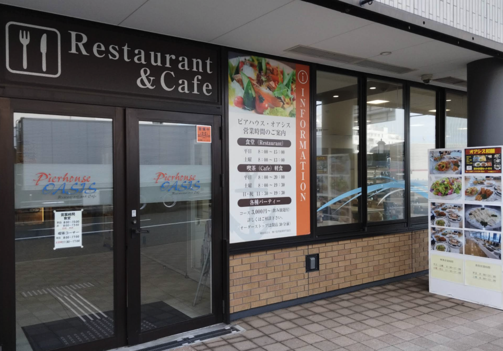 港の景色を堪能したところで、一同お腹が空いてきた。向かったのは第3突堤にある食堂「ピアハウス・オアシス」だ。