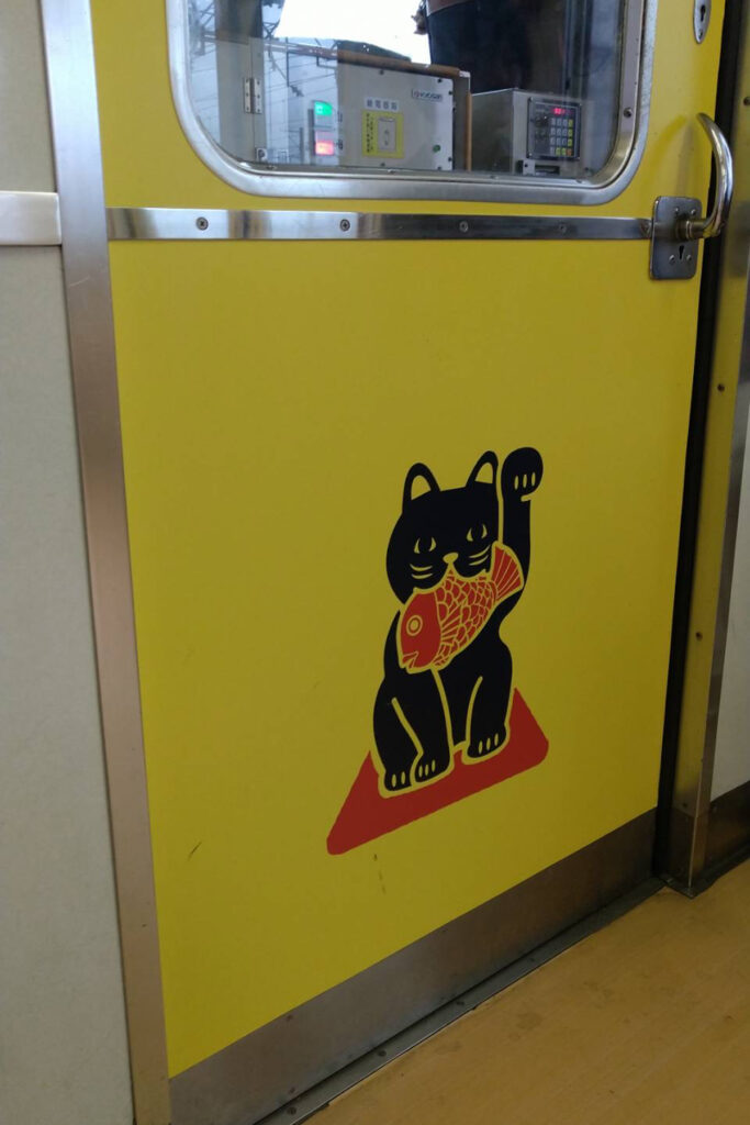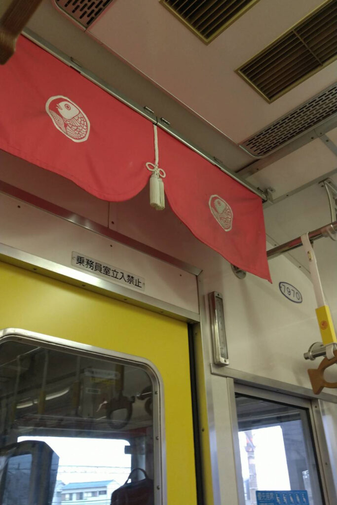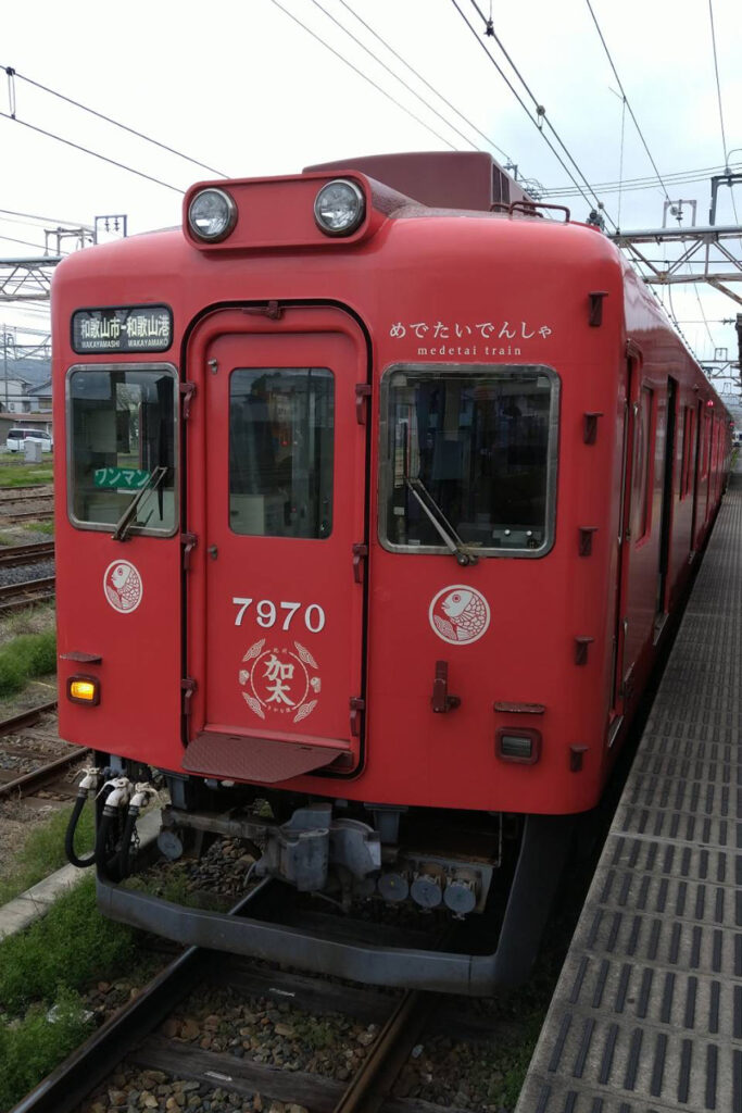 難波から南海本線に乗り、途中で加太線へ乗り換えると和歌山港駅に到着する。加太線では「めでたいでんしゃ」という真っ赤な観光列車が走っており、車内には鯛や招き猫のデザインが施されていて旅のテンションが上がる。