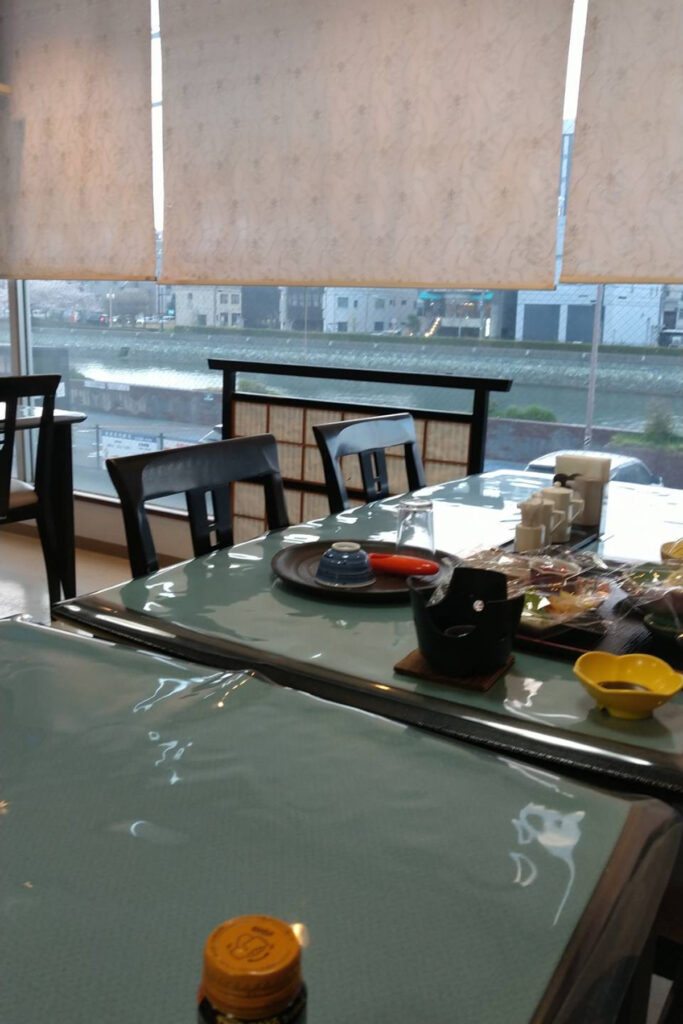 窓から流れる徳島の川を眺めながら食べる夕食は、旅の疲れを一気に癒してくれる。