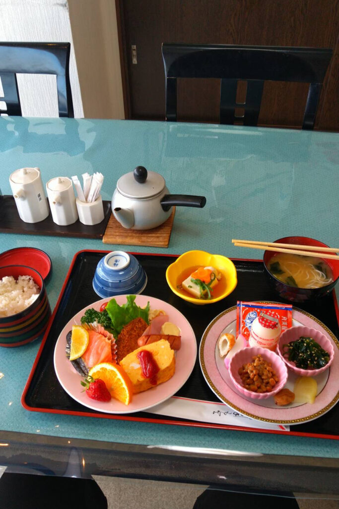 翌朝は色とりどりのおかずが並ぶ和定食でしっかり栄養補給。ポタリングに向けて体を整えた。