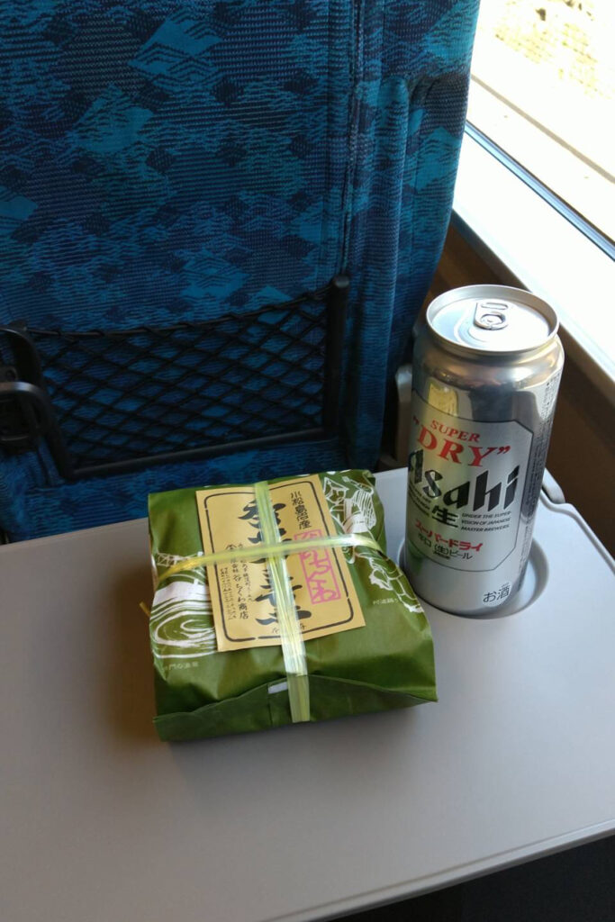 車内では、竹ちくわ発祥の地小松島市の「竹ちっか」とビールで乾杯し、充実した旅を締めくくった。